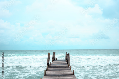 Obraz premium Wooden bridge over the sea. Travel and Vacation. Freedom Concept. Kood island...
