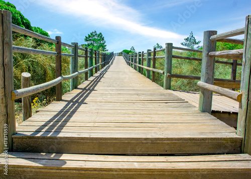 © Michelle List , Fototapeta premium Wooden bridge - Strandübergang