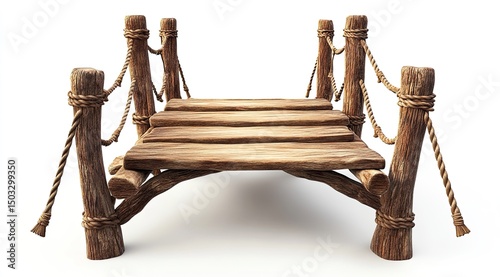 © Mustafa, Obraz premium Wooden bridge with rope railings (1)