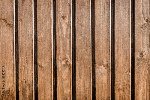 Naklejka premium Wooden brown fence texture natural wood board plank background nature