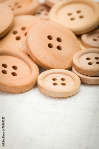 © SzF Ilka Erika, Fototapeta premium Wooden buttons on fabric