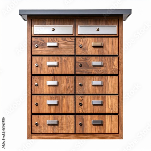 Fototapeta premium Wooden Cabinet with Multiple Drawers and Silver Handles for Rustic Organization