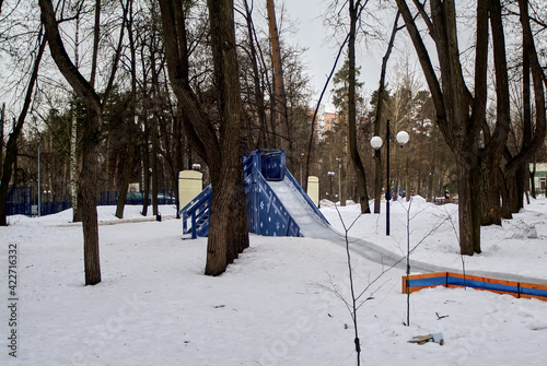 © moskvich1977, Fototapeta premium wooden children's slide with ice descent
