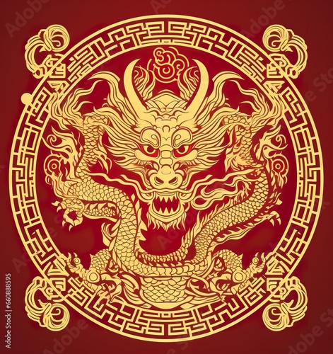 © Dangubic, Fototapeta premium Wooden Chinese Dragon Chinese New Year Card