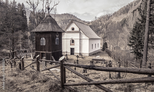 Obraz premium Wooden church at village Cierny Vah, Slovakia