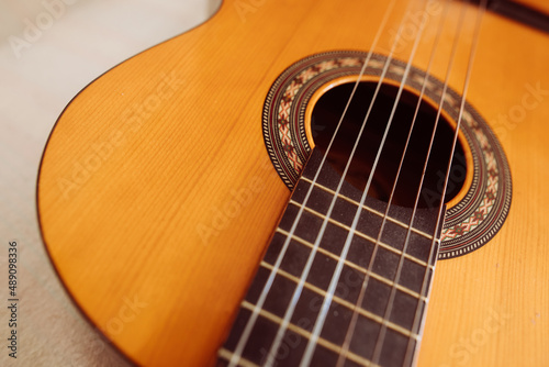 Obraz premium Wooden classical guitar, with plastic strings