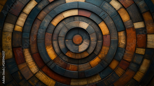 Fototapeta premium Wooden concentric circles, artisan craftsmanship, dark tones, background...