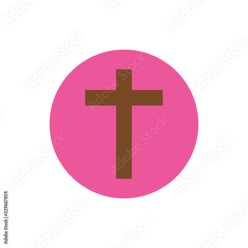 Obraz premium wooden cross religion block and flat style icon