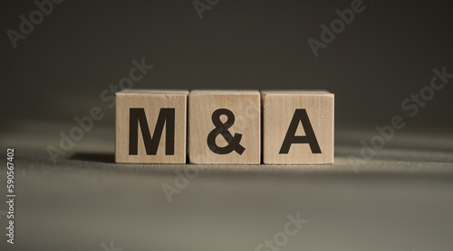 Obraz premium Wooden cube with the letter M and A. gray background. business conceptual...
