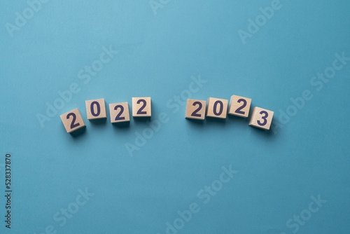 © Mihail, Obraz premium wooden cubes with 2023 new year, number change