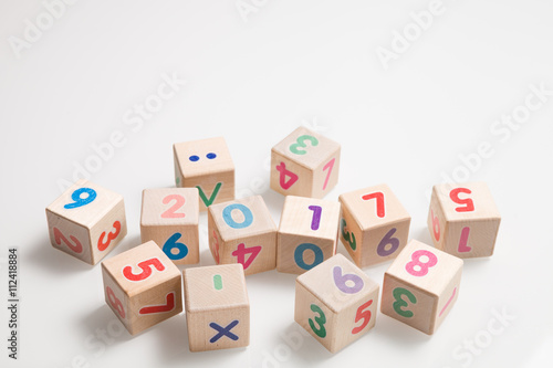 © goodmoments, Obraz premium wooden cubes with numbers on a white background. Education and learning concept. 2017 school year.