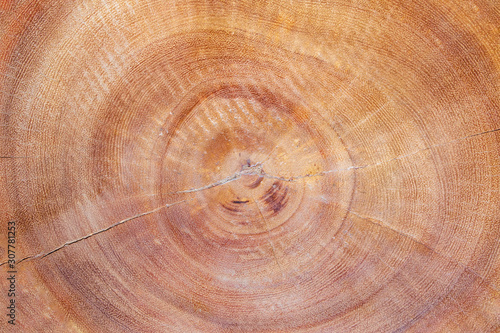 © Phongsak, Naklejka premium Wooden cut big tree stump for background texture detail.