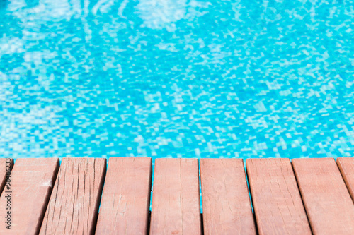 © Sirichai Puangsuwan, Obraz premium Wooden deck on water surface