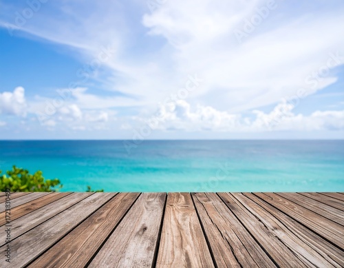 © Turmen, Fototapeta premium Wooden deck overlooking a tranquil ocean