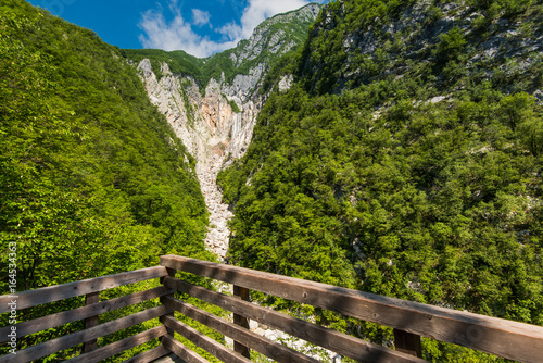 Fototapeta premium Wooden deck overlooking Boka waterfall in Slovenia