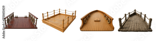 © SRITE KHATUN, Obraz premium Wooden deck set including elegant, simple, bow, and rustic styles isolated. Nautical and marine design elements.
