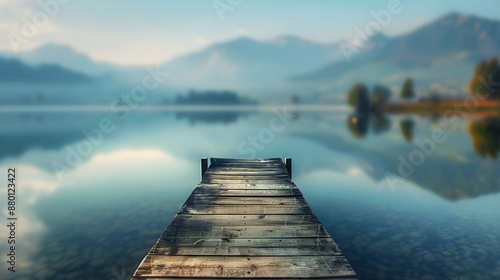 © golf, Fototapeta premium Wooden Dock Extending into a Mountain Lake.