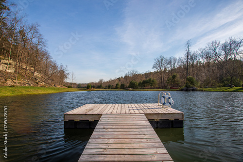 © nagelsphoto, Naklejka premium Wooden Dock Extending Into Calm Pond