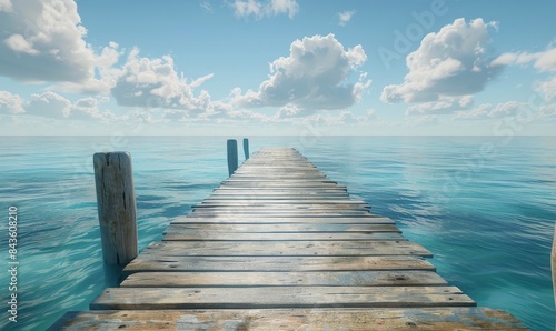 © olegganko, Fototapeta premium Wooden Dock Extending Out To The Calm Ocean Under A Clear Blue Sky