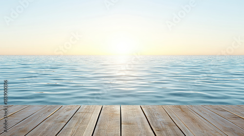 Fototapeta premium Wooden dock ocean sunrise calm horizon peaceful scene