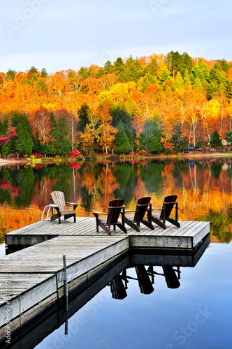 © Elenathewise, Fototapeta premium Wooden dock on autumn lake