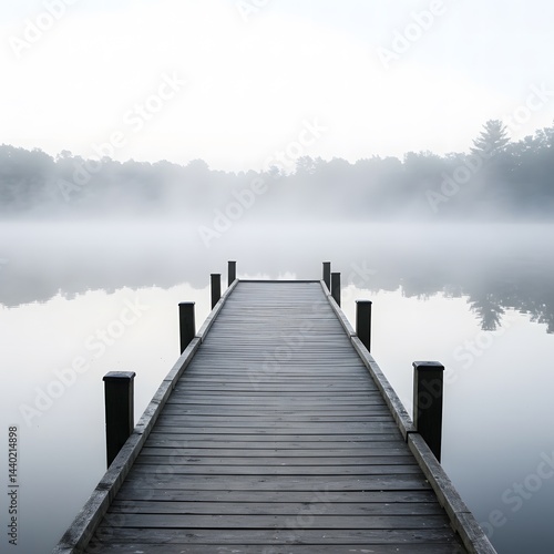 © Best JPG, Naklejka premium Wooden dock over foggy lake