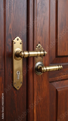 Fototapeta premium Wooden door with ornate brass handles