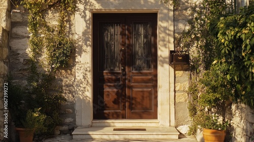 © Aulia, Fototapeta premium Wooden Doorway with Stone Walls