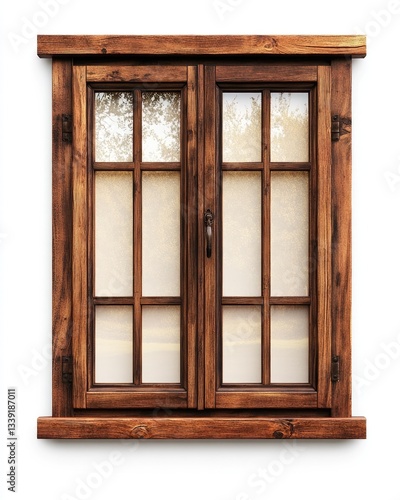Fototapeta premium Wooden double-hung window with divided panes