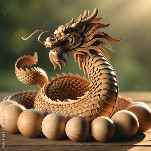 Obraz premium Wooden Dragon Sculpture with Spheres