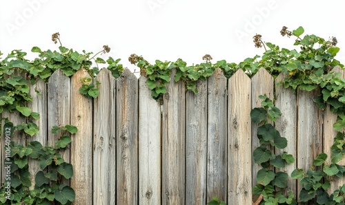 © Murda, Fototapeta premium Wooden fence covered with lush green vines.
