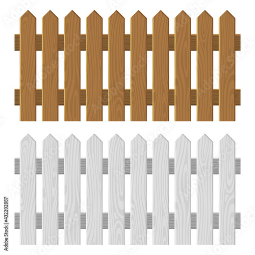 Fototapeta premium Wooden Fence Set on White Background. Vector