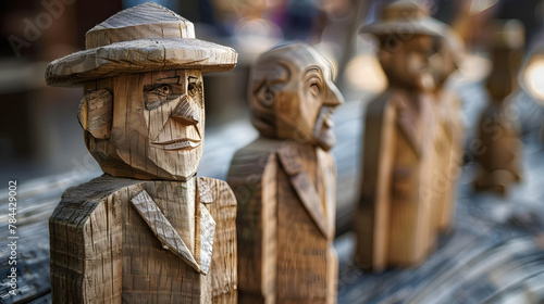 Naklejka premium Wooden figures in two rows