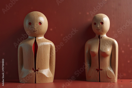 © Amila Vector, Obraz premium Wooden Figures Leading a Crowd of People