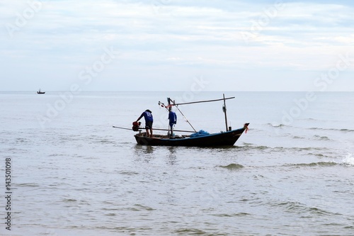 © wandeaw, Naklejka premium Wooden fishing boat abstract ocean landscape