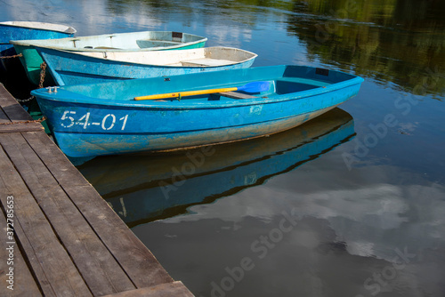 © FO_DE, Fototapeta premium Wooden fishing rowing boats on the river .