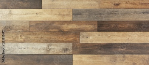 © NFTNexus, Naklejka premium Wooden floor planks pattern with varying shades of brown and beige textures