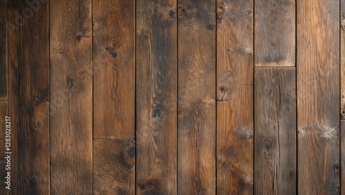 © AugmentArt, Obraz premium Wooden floor texture close-up with dark brown weathered planks natural surface rustic background.