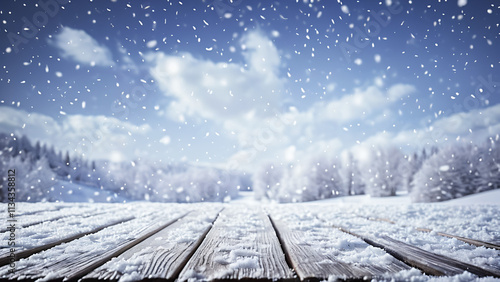 © Garadel, Fototapeta premium wooden floor with snow on it