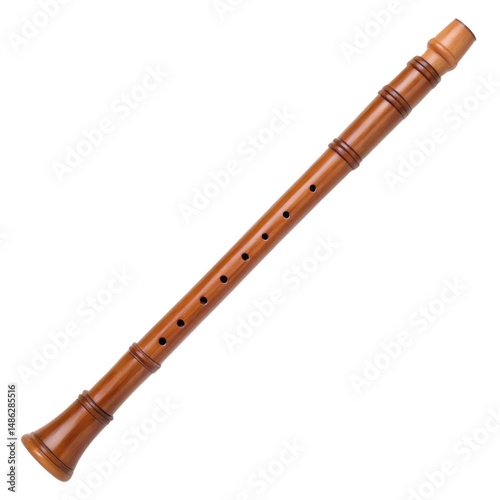 Fototapeta premium Wooden flute instrument with smooth finish and multiple finger holes, ideal for music enthusiasts