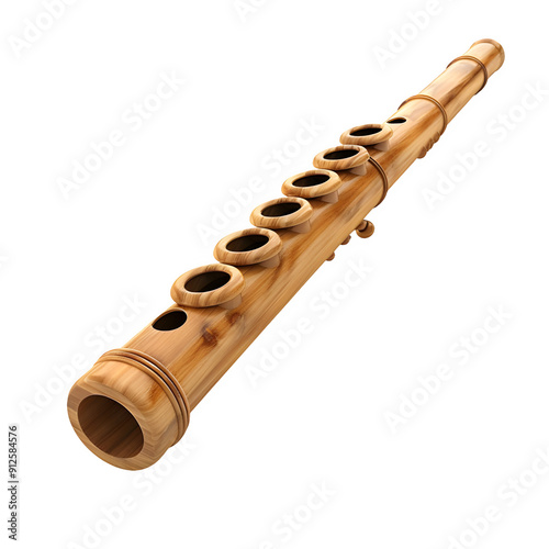 © Michael, Naklejka premium Wooden flute with six holes, isolated on a transparent background, showcasing its detailed craftsmanship