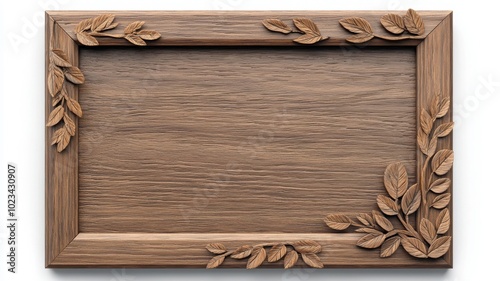 © Kin no Hikari, Naklejka premium Wooden frame with carved leaves design on a rustic background.