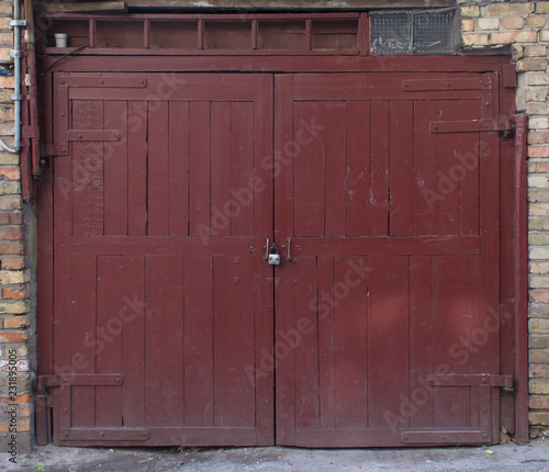 © Sergii, Fototapeta premium Wooden gate to the warehouse, garage