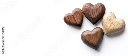 © vxnaghiyev, Fototapeta premium Wooden hearts set against a white background Love theme Copy space