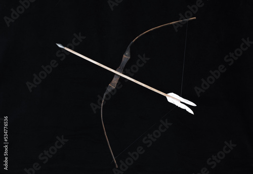 © serikbaib, Fototapeta premium wooden hunting bow on a black background