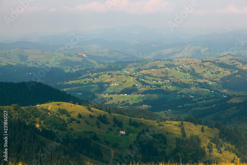 © Farik, Fototapeta premium Wooden hut in the Carpathian Mountains