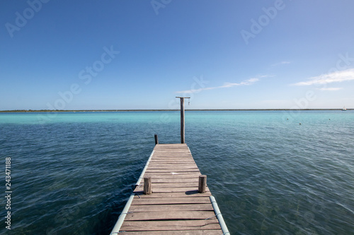 Fototapeta premium wooden jetty for boats on a blue and blue crystalline Caribbean sea....