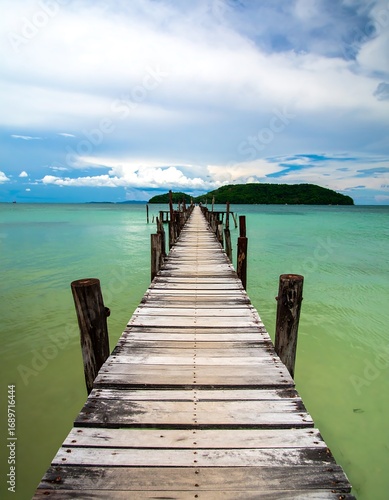 © Marifatul, Fototapeta premium Wooden jetty leading to island