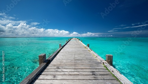 Fototapeta premium Wooden Jetty That Juts Out Into Paradise Tuquoise Waters Generative Ai