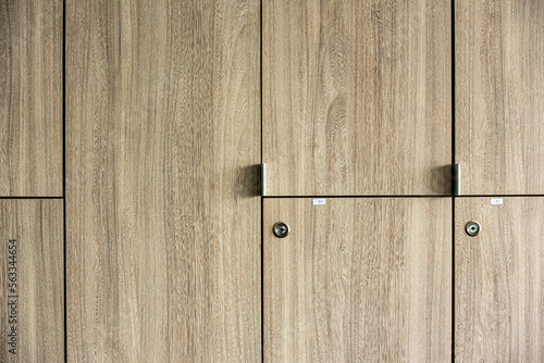 Naklejka premium Wooden lockers with key in locker room at school sport club office.